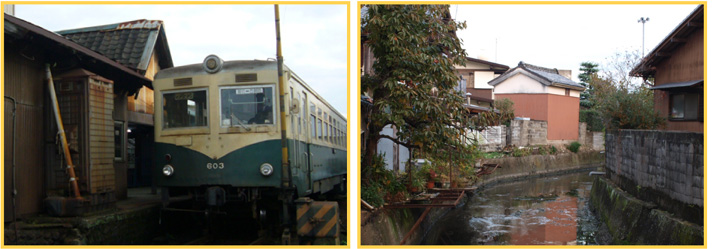 | 鉄道ファンが集う西御坊駅の名物車両。2009年、ついに新型にリニューアルされてしまいました。今となっては思い出の車両です。 | お店の前に流れる小川には、季節の渡り鳥なども飛来します。昭和ノスタルジー漂う情景です。 | |||||||||||||||